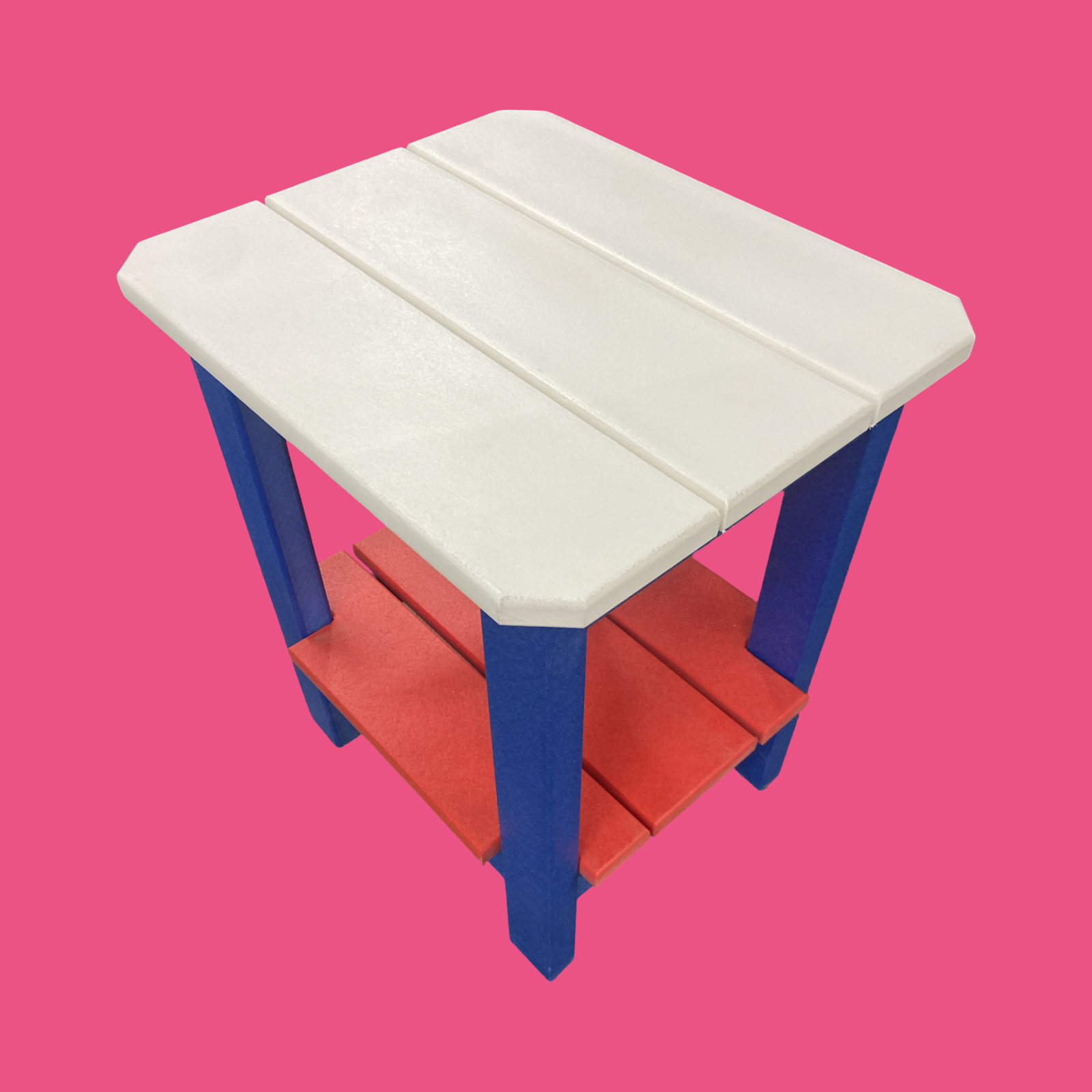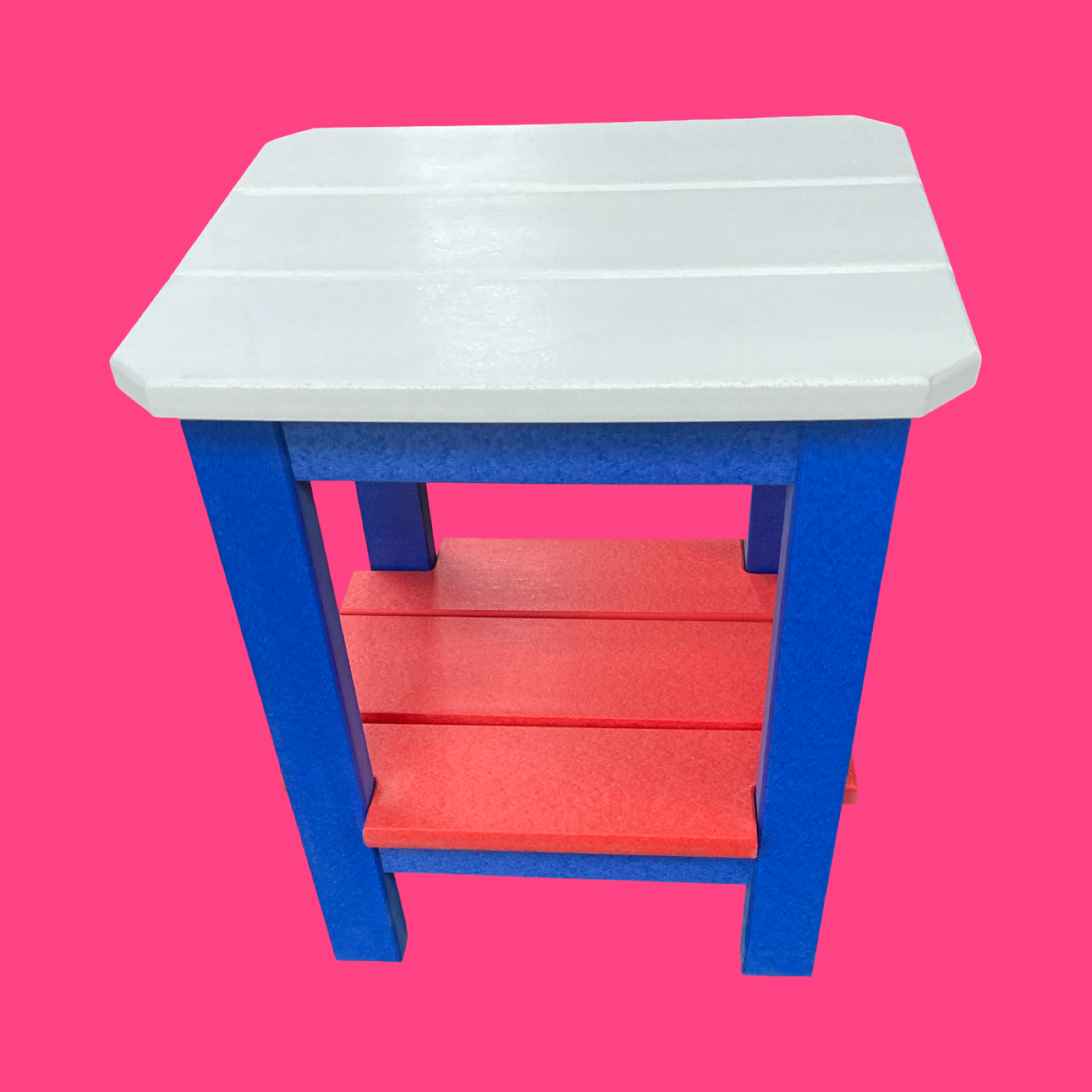 End Table #OOT4, 17"x20", Frame-Blue,Top-White,Shelf-Bright Red