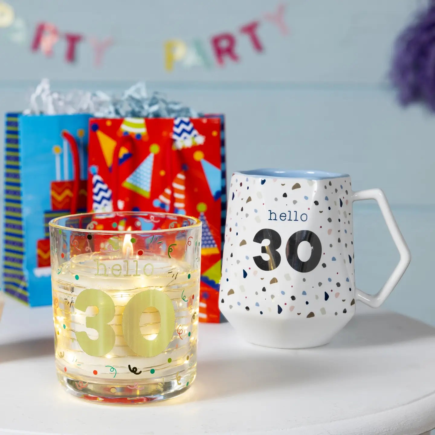 Meet Pavilion's 'Hello 30' candle. This 3.5 oz tapered candle is more than just a light source. It features LED accents that add a unique glow. Crafted with the high-quality standards Pavilion is known for, this candle is a perfect choice. Illuminate your surroundings with Pavilion's 'Hello 30' candle.