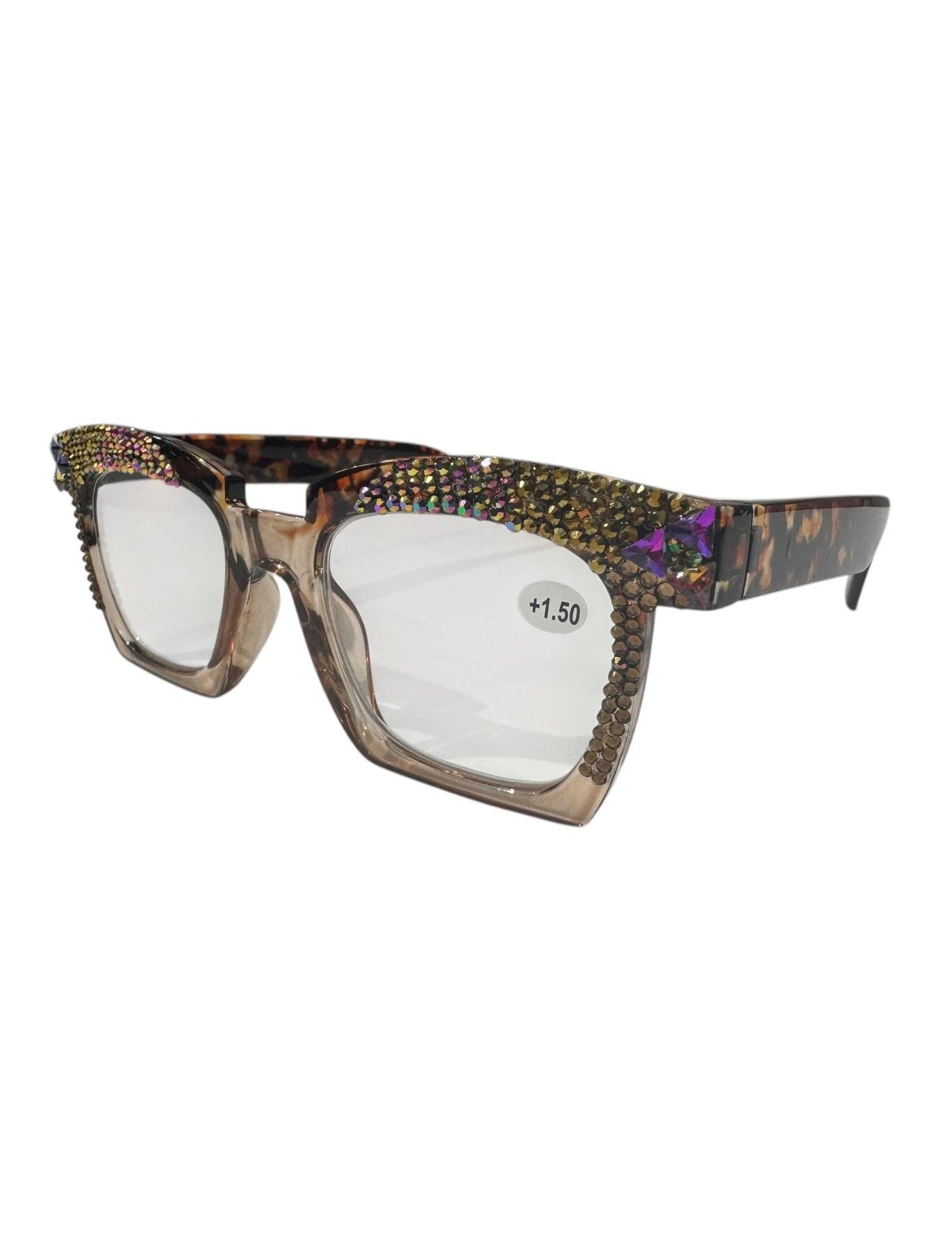 Brown Handmade Rhinestone Square Frame Reader G0510