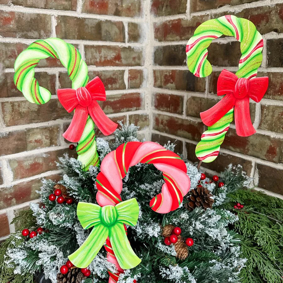 Sweeten your holiday display with our Merry & Bright Candy Canes with Bows Stake! This delightful ornament features festive candy canes adorned with cheerful bows, bringing sugary-sweet charm to your outdoor spaces. Perfect for garden beds, pathways, or porch displays, this playful stake captures the joy and whimsy of the season. Plant it, display it, and watch it become a neighborhood favorite that spreads holiday cheer!