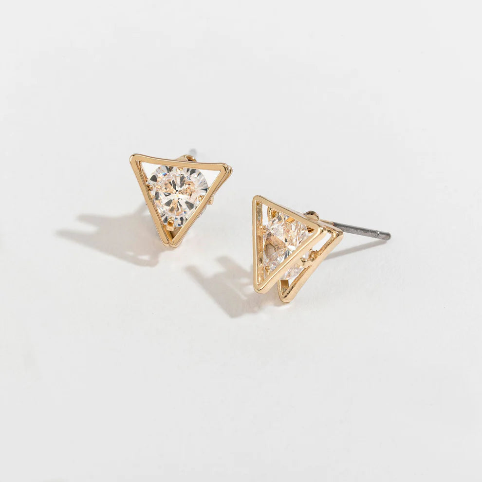 Add a touch of geometric charm to any outfit with the Dazzlers Triangle Frame Stud Earrings. Their sleek triangular design adds a modern twist, making them perfect for day-to-night wear. Lightweight and comfortable, these studs bring playful elegance without overpowering your look. Ideal for adding a subtle sparkle to your style while keeping it fun and fresh.