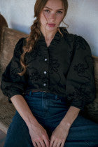 Add a touch of whimsy to your wardrobe with this Embroidered 3D Floral Top. Delicately crafted with raised floral details, it brings playful texture and charm to your outfit. Perfect for sunny days or lively gatherings, this top lets you bloom with style and personality wherever you go.