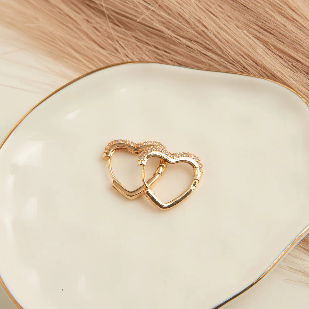 Add a touch of modern elegance to any outfit with the Heart Pave Cubic Zirconia Dazzler Hoop Earrings. Featuring a gold heart-shaped hoop design with brilliantly shimmery cubic zirconia, these cuties bring a bit of sparkle to any look.