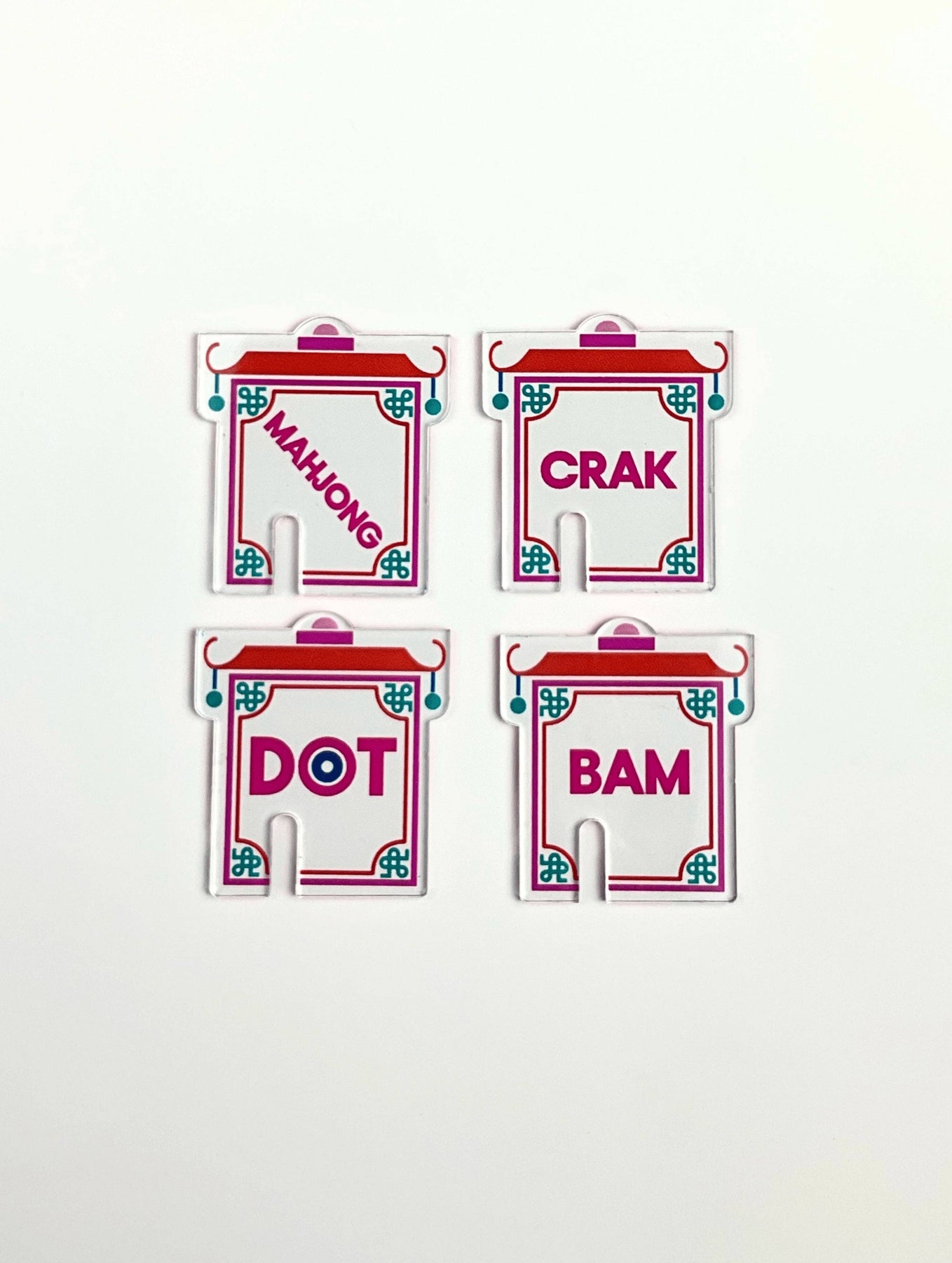 Set of 4, one of each: Mahjong, Bam, Crak and Dot