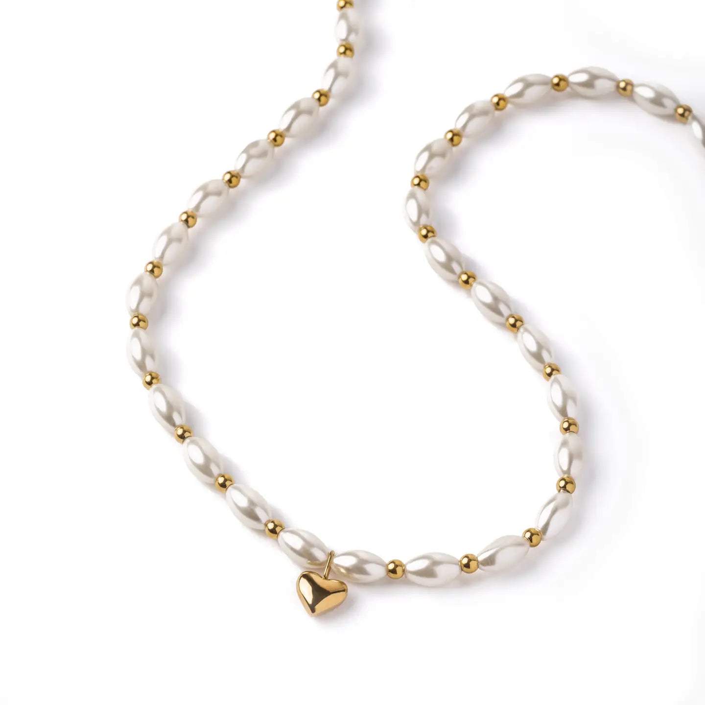 Waterproof with a stainless steel base metal, lined with White Shells Beads. Chain Length: 16" Chain Length with Extender: 19" Chain Extender Length: 3" Closure Type: Lobster Clasp Our bestselling necklace, now upgraded with natural white shell beads and a gold heart charm. Versatile, and perfect for everyday wear or any occasion. A timeless favorite reimagined.
