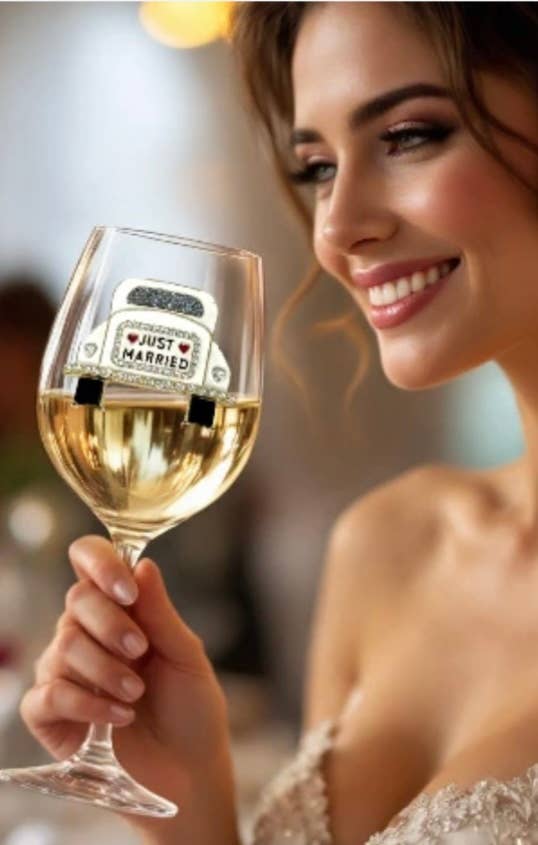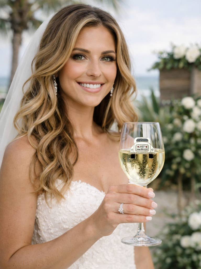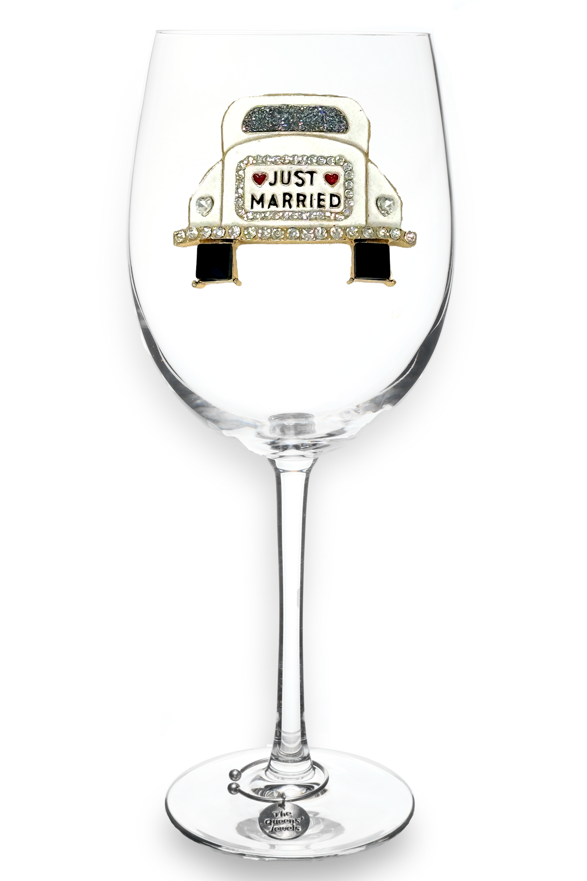 Celebrate love, commitment, and a lifetime of memories with our Just Married Jeweled Wine Glass — a stunning new addition to our wedding collection. Hand-crafted with shimmering crystal accents, this elegant glass is designed to toast life’s most unforgettable “I do.”